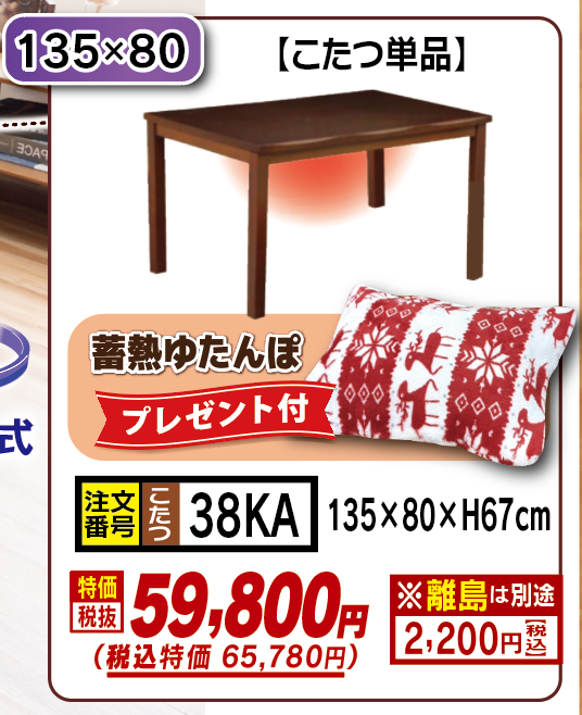 38KA(80×135×H65cm) ハイタイプ【こたつ単品】
