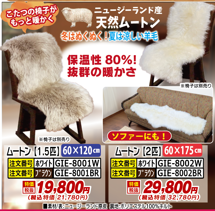 表:ニュージーランド原皮 裏地:ポリエステル100%キルト