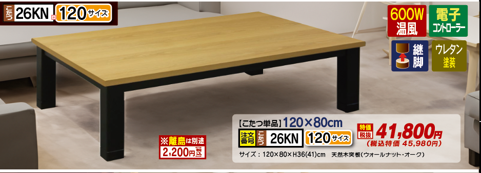 26KN(120×80cm)長方形【こたつ本体】