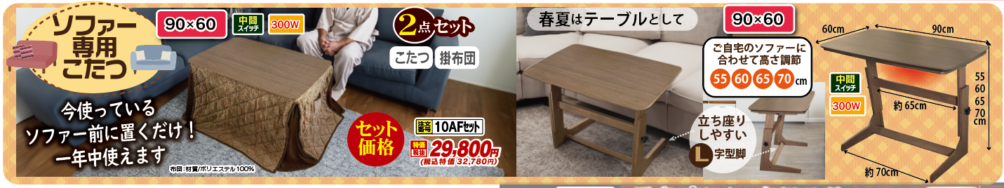 【完売しました】10AFセット ソファー専用こたつ(90×60)★代品あります★