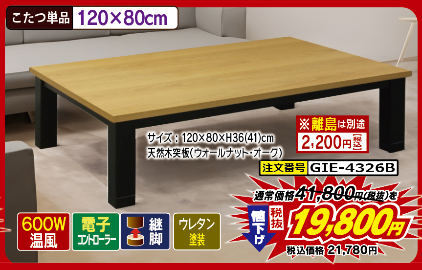 2025年秋冬号 『こたつ本体 26KN』値下げしました。