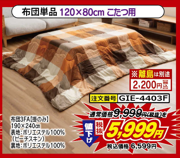 GIE-4403F【こたつ布団/掛のみ】長方形[105・120サイズ対応]