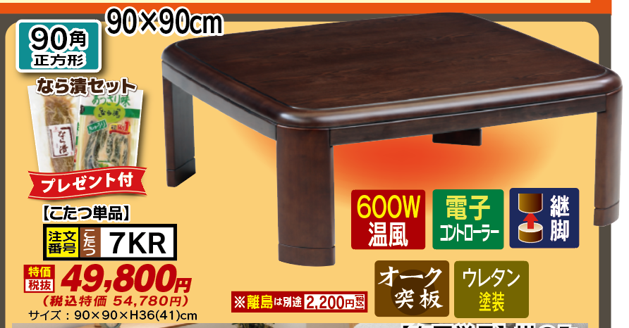 ヒ-タ-:600W温風(電子コントローラー)/タモ突板,継脚(5cm)