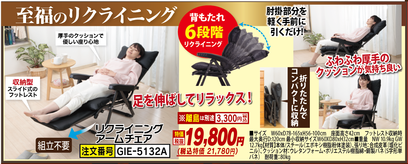 GIE-5132A リクライニングアームチェア 【AC-トリノ】