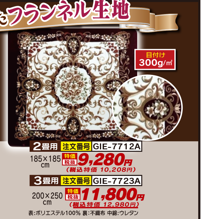GIE-7712A ホットカーペットカバー 2畳 RO