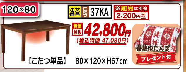 37KA(80×120×H67cm) ハイタイプこたつ単品