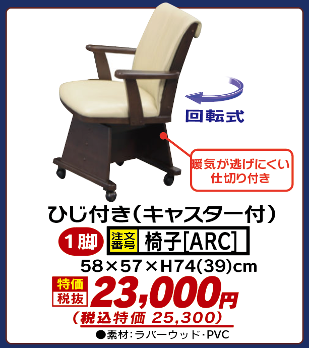 (こたつ用椅子)ARC/回転椅子(肘つき)